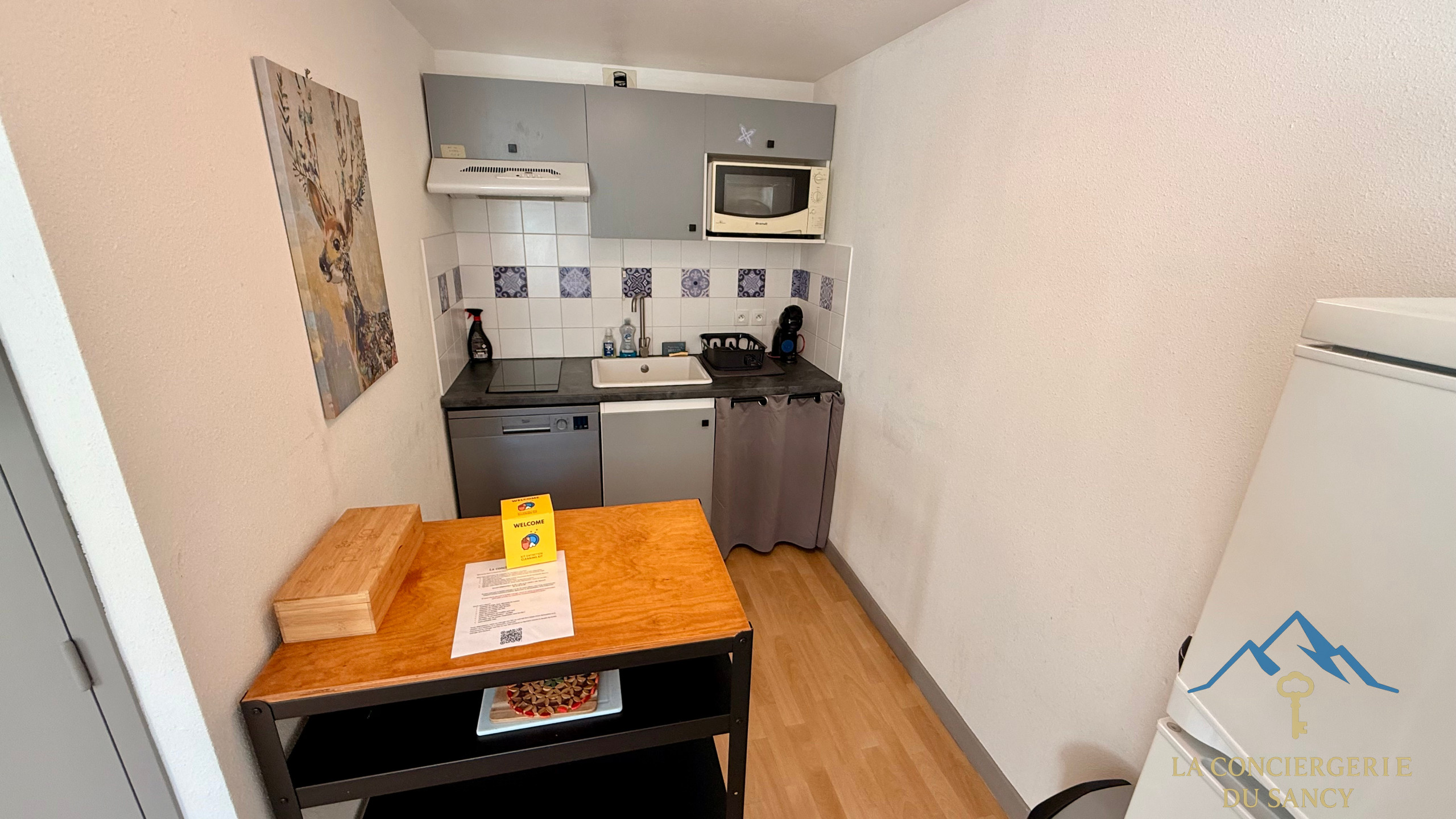 ✅ Equipped open-plan kitchen (ceramic hob, refrigerator, microwave, freezer, dishwasher, coffee maker, toaster, utensils)